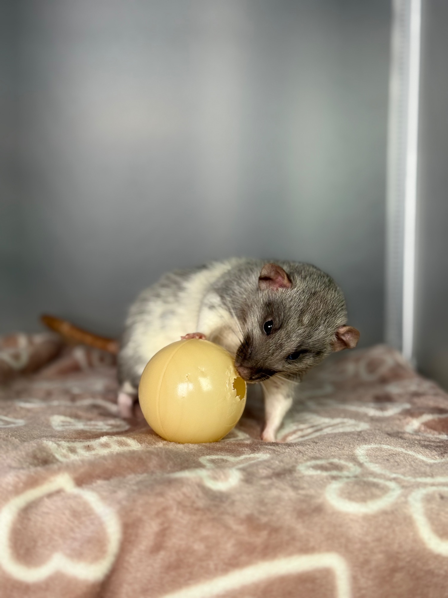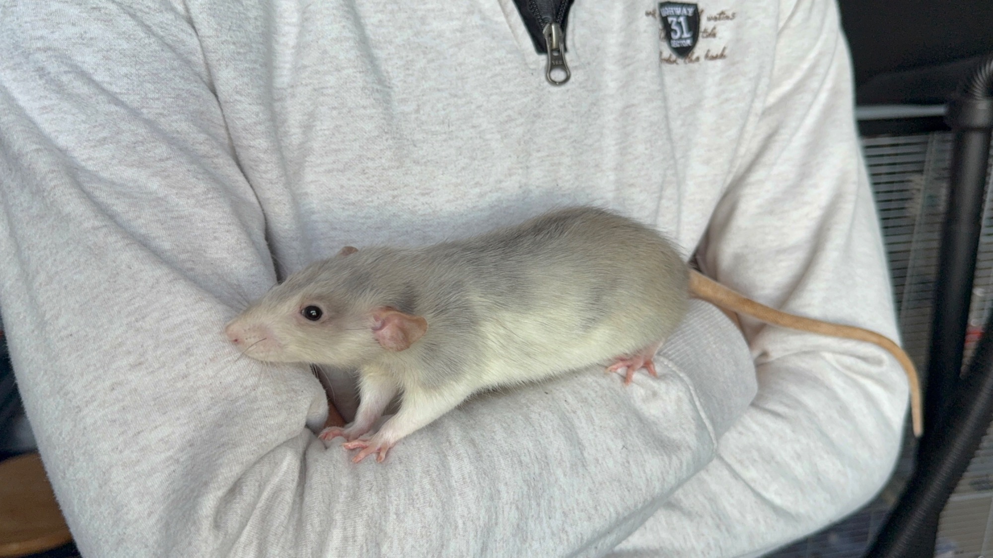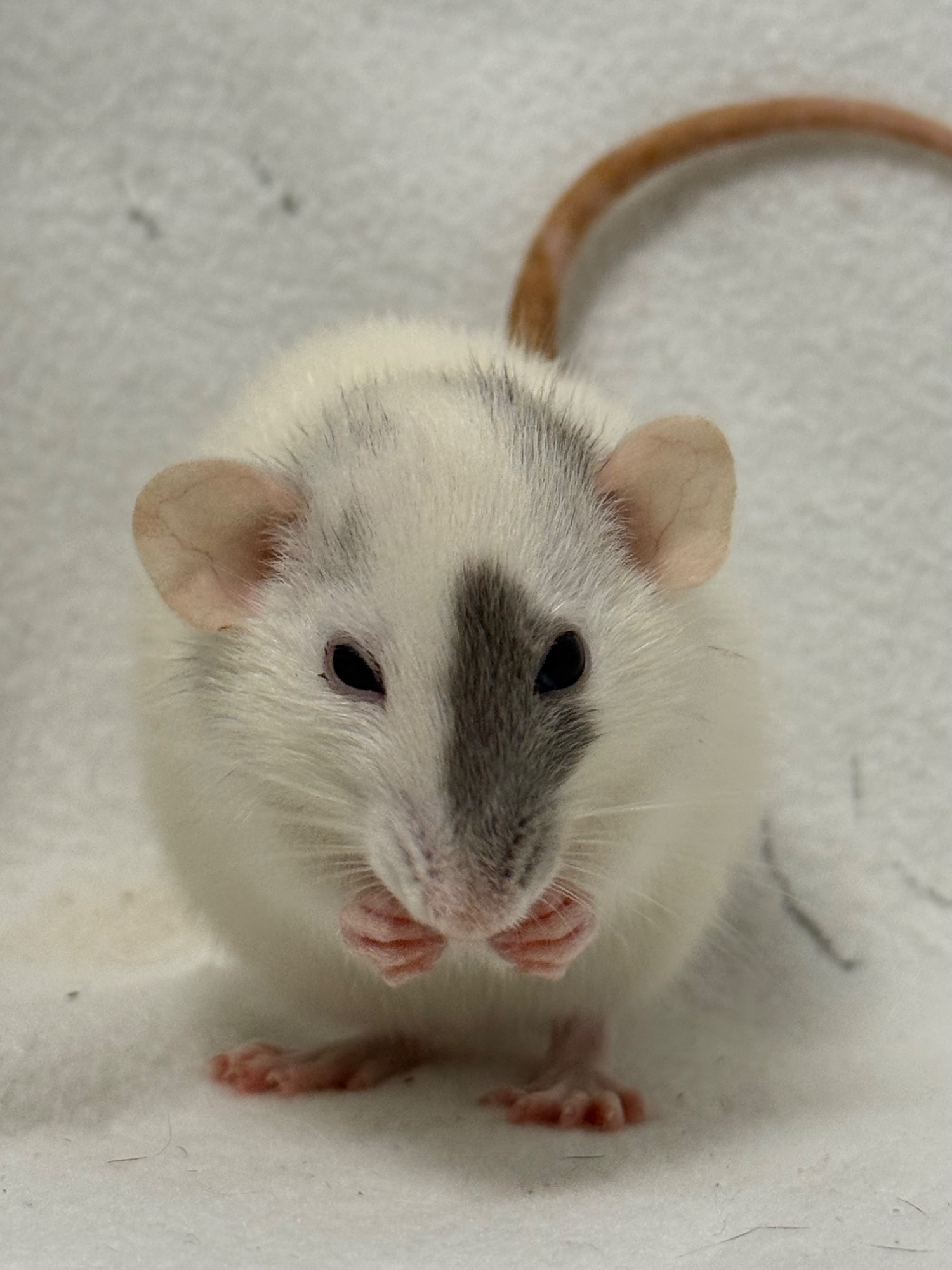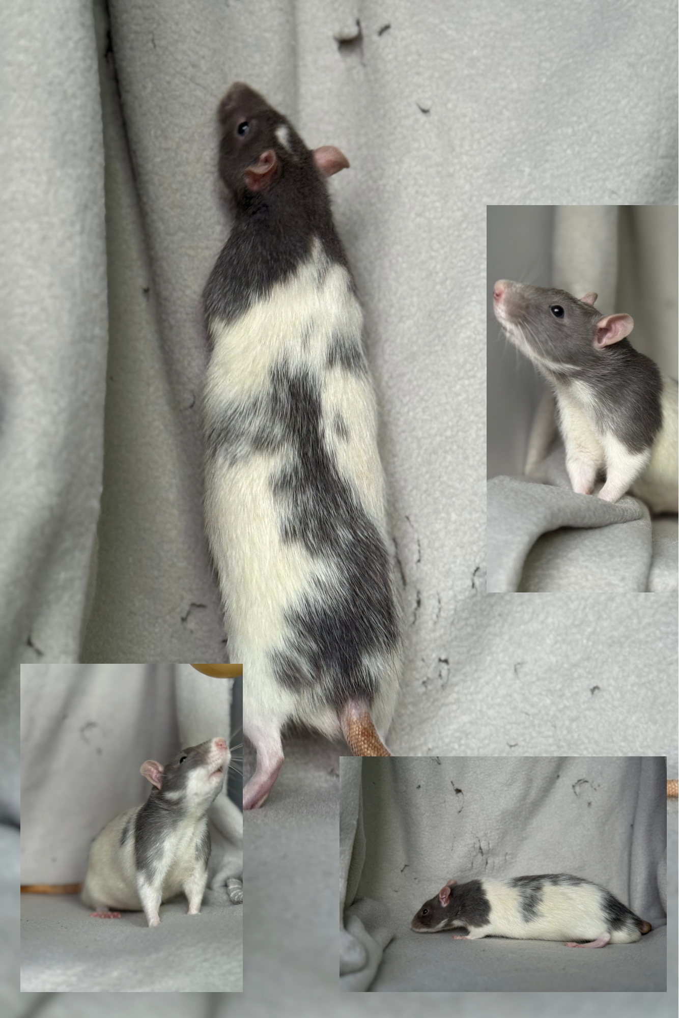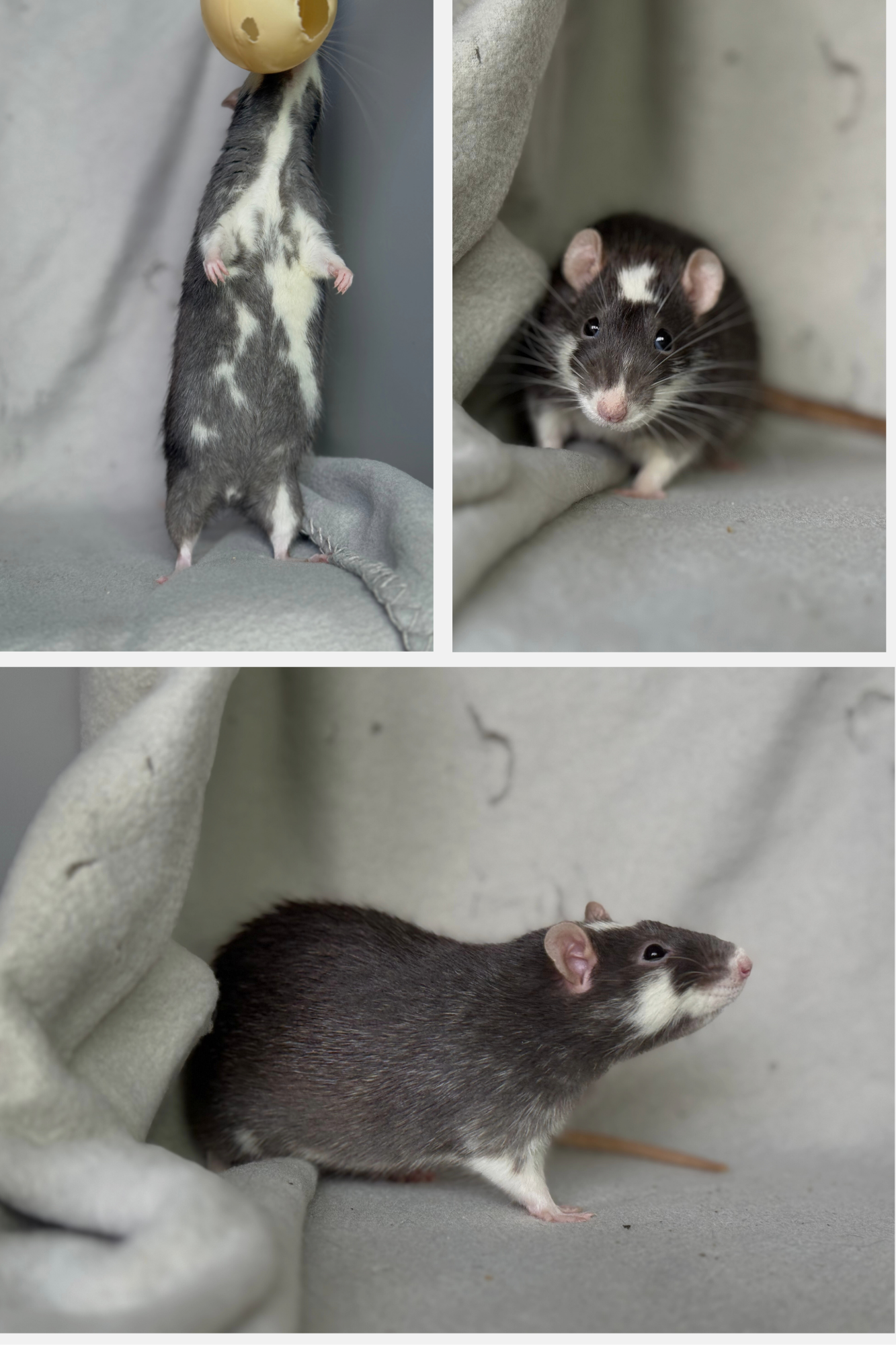 Bleu russe patché dumbo lisse, yeux noir dwarf - né le 20/07/2025. Eleveur, Elevage Familial de Rats en France (Hirson).