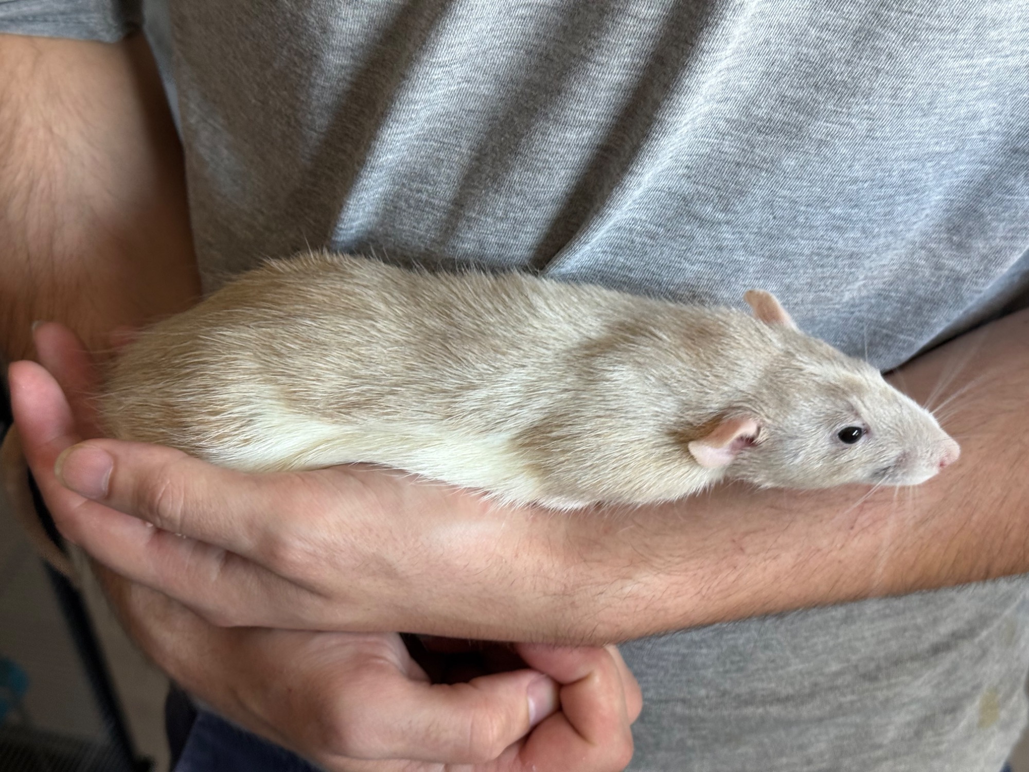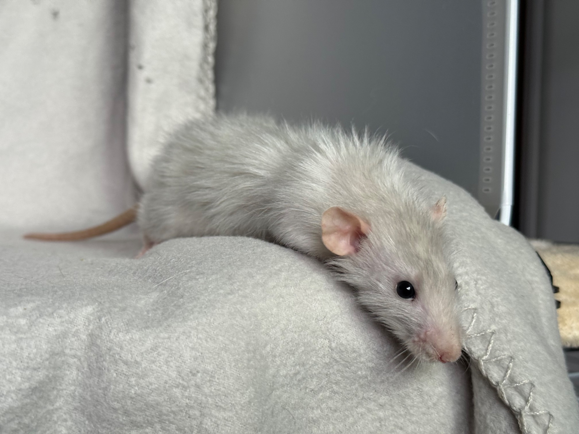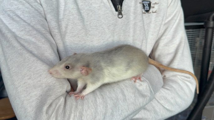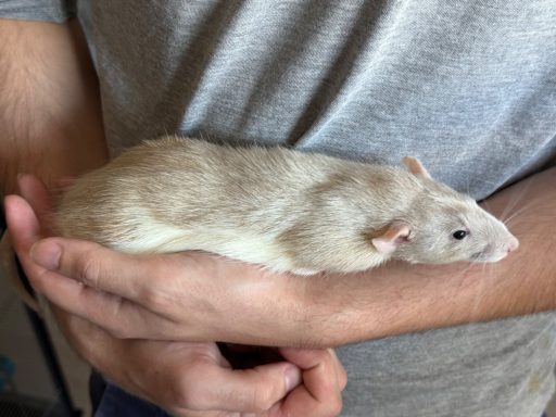 Bleu russe agouti opossum standard lisse, né le 08/02/2025. Eleveur, NPB Rattery en France. A eu 2 portées.