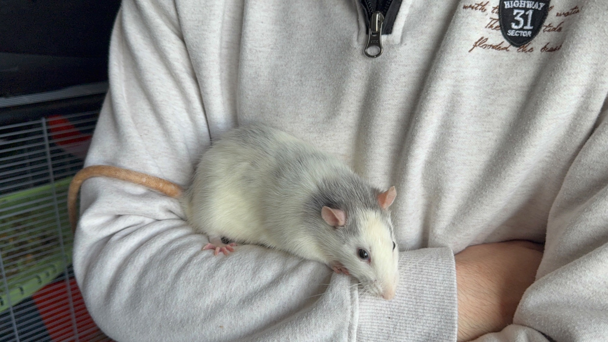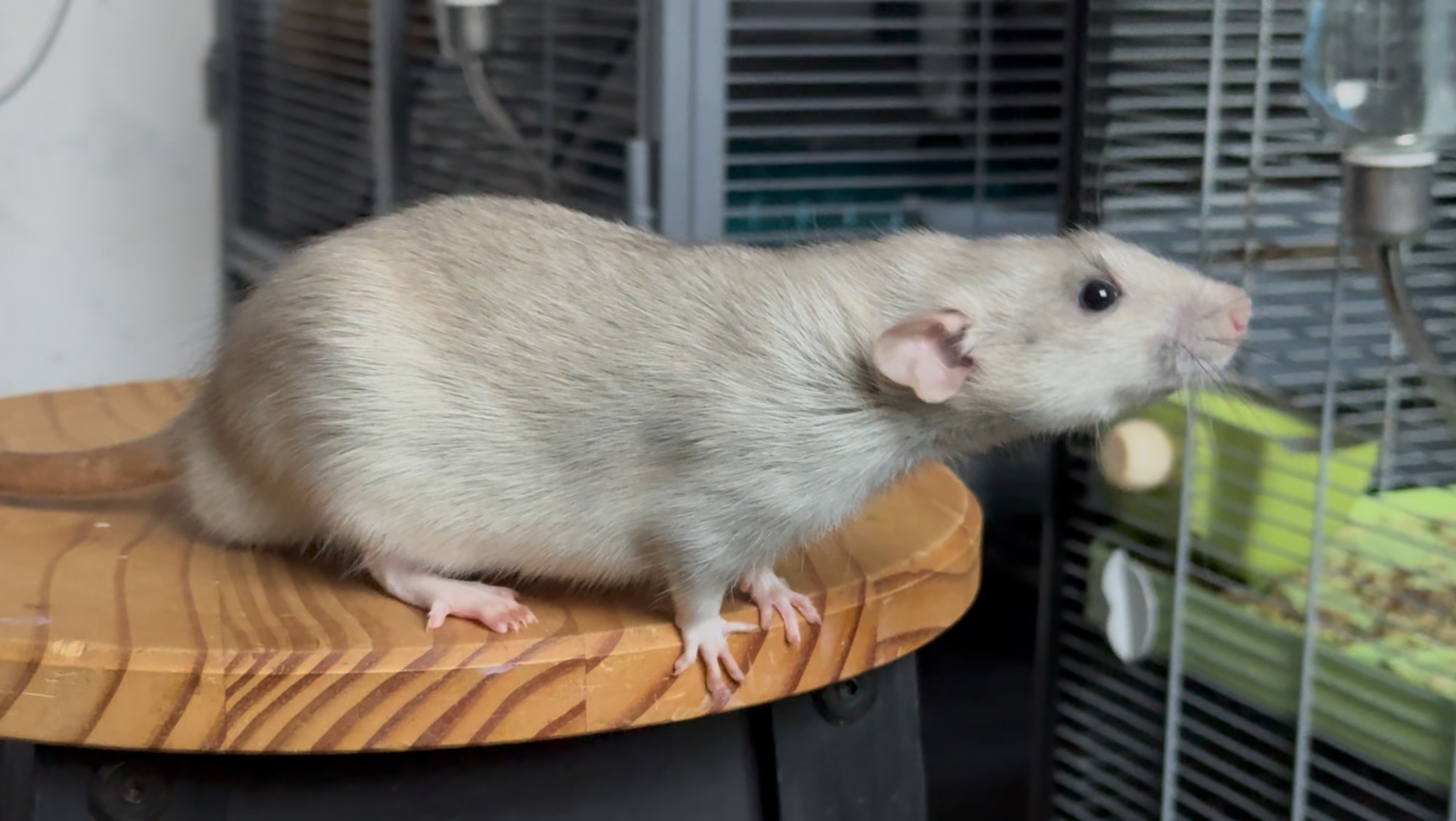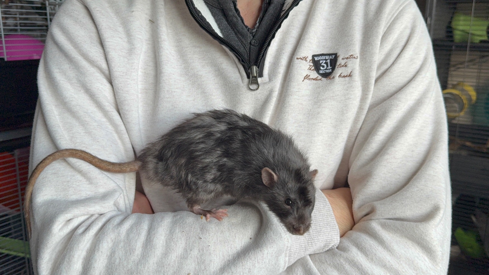 Bleu russe agouti opossum standard lisse, né le 08/02/2025. Eleveur, NPB Rattery en France. A eu 2 portées.